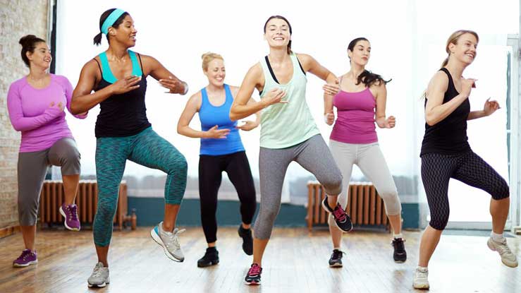 Zumba is a popular fitness program inspired by Latin dance. The word "Zumba" comes from a Colombian word that means to move fast and have fun, which is just how people describe the routine. Using upbeat Latin music together with cardiovascular exercise, Zumba is aerobic dancing that is lots of fun and easy to learn. Zumba seems to be an optimal fitness choice, mixing cardio intervals with resistance training. Many experts believe that an interval/resistance combination maximizes caloric output, fat burning, and total body toning. Zumba mixes effective body sculpting movements with easy-to-follow, fun dance steps. People seem to forget about working out during a Zumba session, allowing them to exercise longer, and burn even more calories. A typical Zumba session lasts about an hour and incorporates several dance styles, including cumbia, merengue, salsa, reggaeton, mambo, rumba, flamenco, and calypso and Salsaton. The Latin music includes both fast and slow rhythms, allowing for a great cardio workout as well as body sculpting exercises.